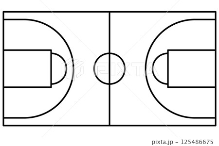 バスケットコートのシンプルな線画のアイソメトリックイラスト
