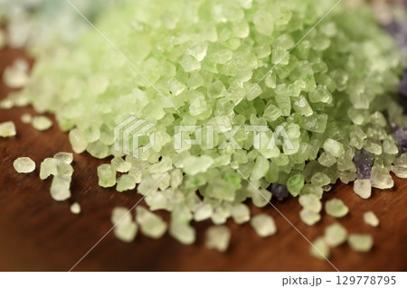 山盛りにした緑色の香り付きカラーバスソルト アロマバスソルト