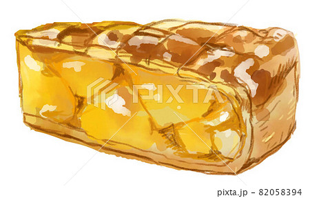 りんごがいっぱい詰まった一切れのアップルパイの水彩イラスト