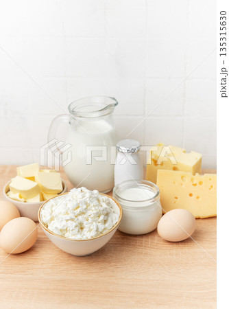 Assortment of fresh dairy products providing healthy nutrition