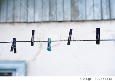 clothesline with clothespins on the rope