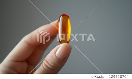 Close-up of a hand holding a single softgel capsule