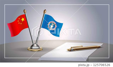 Small national flag of China and Northern Marianas flag Relation, Template Vector Illustration