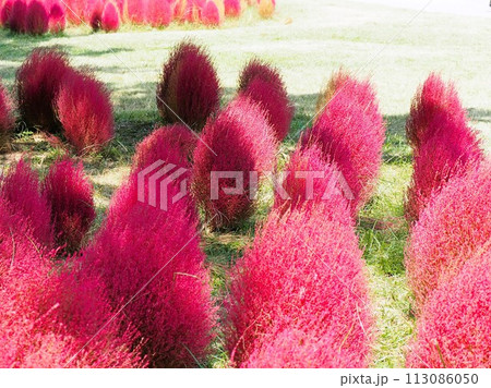 紅葉したコキア、ホウキギ、ほうき草、ホウキギ