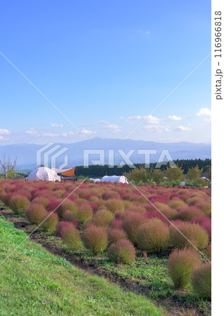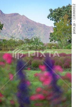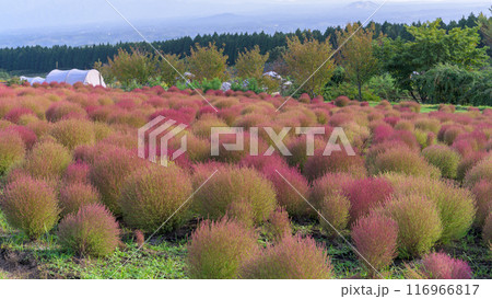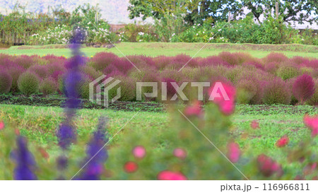 花公園の遊歩道から観えるホウキギ(バッシア属)風景「くじゅう花公園」大分県竹田市