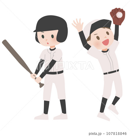 野球をする笑顔の子どものイラスト