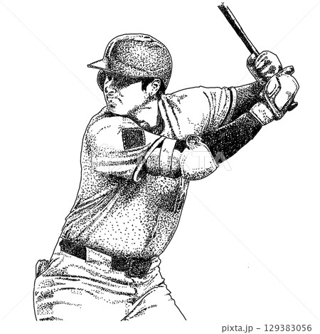 メジャーリーガーのバッターのペン画イラスト