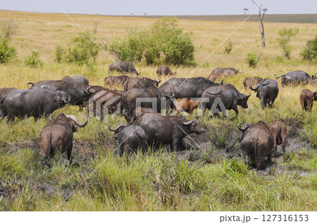 ケニア・マサイマラのバッファローの群れ Herd of Buffaloes in Kenya