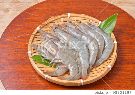 食材としての海老、バナメイエビ、バナメイえび、未加熱未調理。