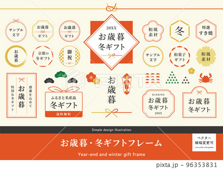 お歳暮、冬ギフトの和風フレームセット 和のベクターイラスト素材 円形・丸型ラベル 日本の伝統行事