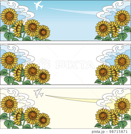 バナー 夏 青空 フレーム ひまわり 雲 アニメ コミック 漫画 背景 イラスト素材セット