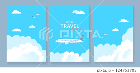 バナー 広告 WEB 夏 空 飛行機 雲 フレーム コピースペース 背景 青色 水色 イラストセット