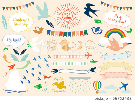 バナー フレーム 春 チューリップ 飛行機 気球 虹 青空 背景 コピースペース イラスト素材セット