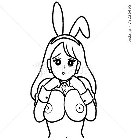 大きなおっぱいを露わにしたバニーガールのイラスト 線画