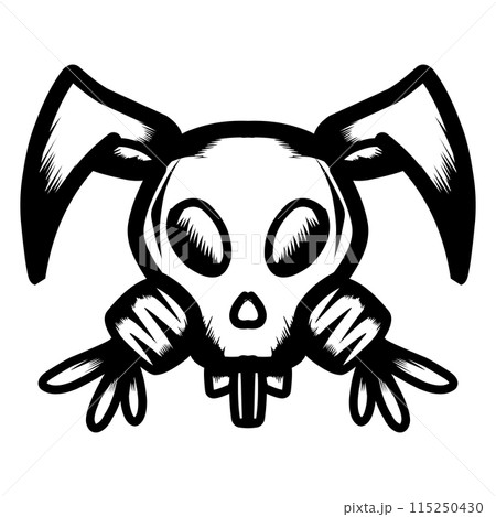 Cartoon rabbit skull with carrots, Halloween vector illustration.