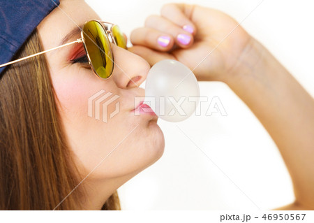 Caucasian Woman Bubble Gum