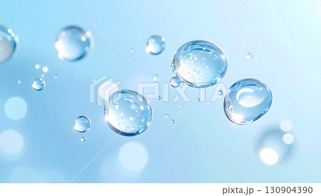 青い背景に浮かぶ透明な泡が美しい保湿イメージ