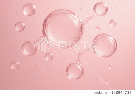 光る惑星や星、美容成分の結合をイメージしたベクターイラスト