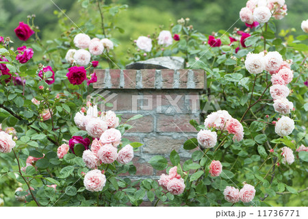 バラのアーチ アーチ ローズガーデン バラ園 石畳
