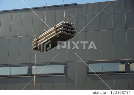 クレーンによる足場材の積み降ろし