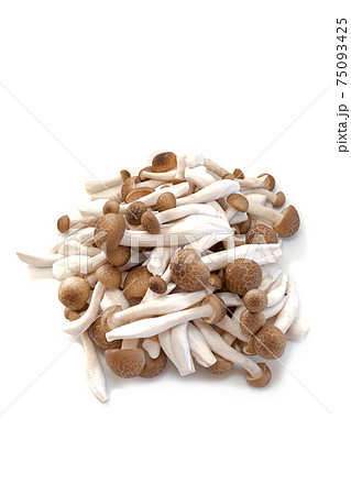 しめじ (ぶなしめじ)とほぐしたしめじ(白背景)