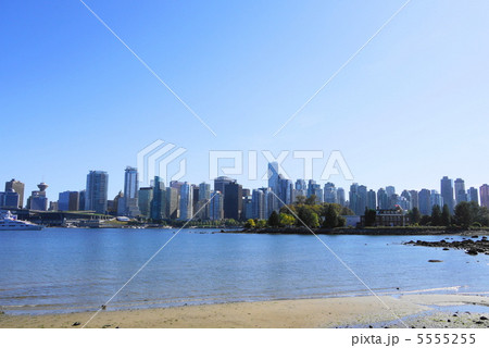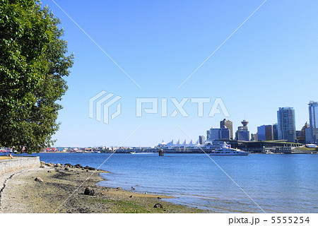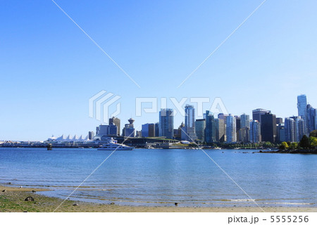 春のバンクーバーの入江沿い ダウンタウンの街並みの一望