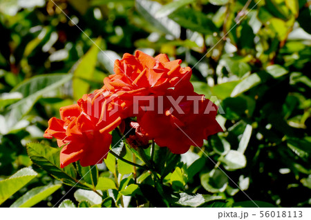 調布市の植物園に咲く朱色のバラ グロアール・ドゥ・ミディ(モダンローズ)