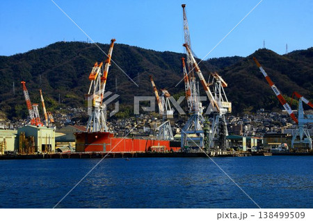 造船所のクレーンと建造中の船舶