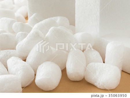 箱の中に入れられたバラ緩衝材 発泡スチロール 梱包材