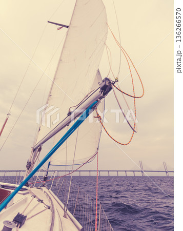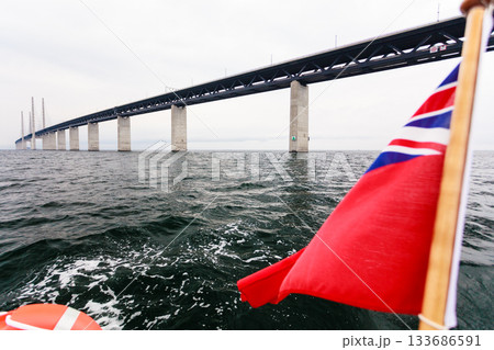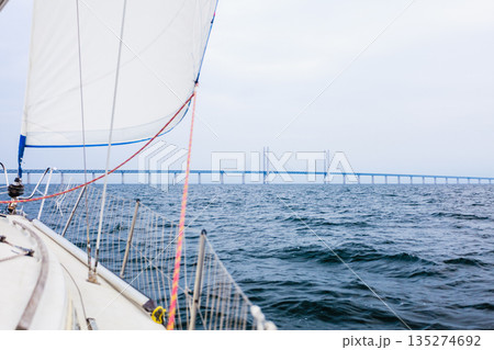 Yacht and oresund bridge between denmark sweden
