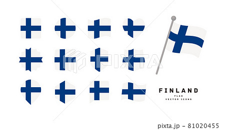 フィンランドの国旗 色々な形のアイコンセット ベクターイラスト
