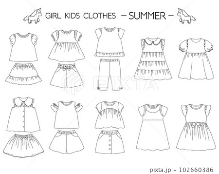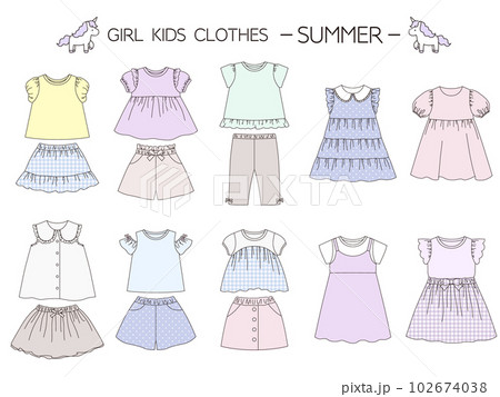 夏の女の子の子供服コーディネート