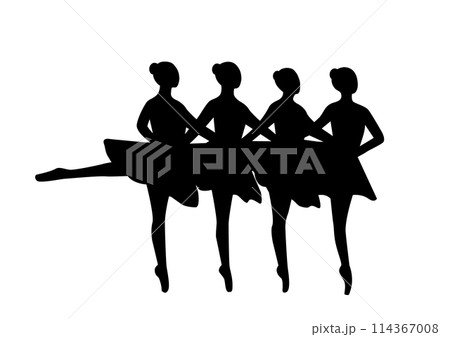 ダンサーのシルエットのイラストセット_クラシックバレエのポジション