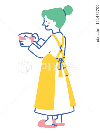 エプロン姿でお菓子作りをする女性_色