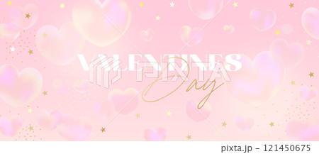 Romantic pink Valentines Day banner with soft hearts, golden stars, and pastel gradients for cards, invitations, or love-themed designs