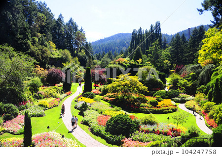 Victoria, British Columbia, Canada Tourists at Butchart Gardens Sunken Garden. High quality