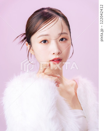 ファーコートを着た女性のファッションイメージ スキンケア コスメ