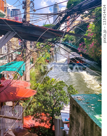 タイのバンコクの街の中の生活感のある運河
