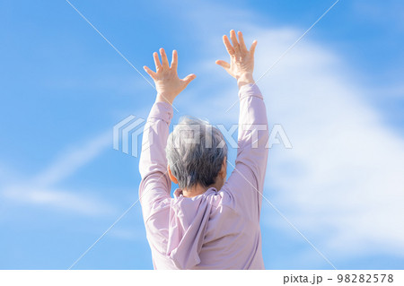 ストレッチをする70代元気なおばあちゃん
