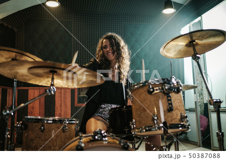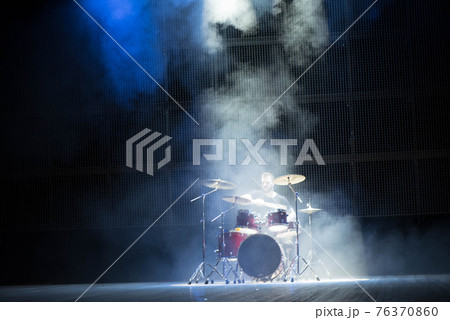 music, people, musical instruments and entertainment concept - male musician with drumsticks playing