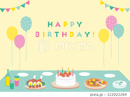 バースデイケーキの誕生日パーティー向け背景イラスト