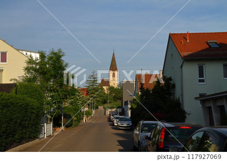 ヨーロッパのドイツ連邦共和国 バーデン=ヴュルテンベルク州ゲルリンゲン 街の中に建つ聖ペテロ教会