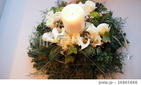 クリスマス お正月のキャンドルアレンジ 純白とグリーン