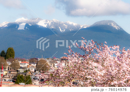 春のバーナビー市 街並み 満開の桜並木 ブリティッシュコロンビア州 カナダ