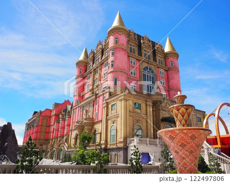 ダナンのテーマパーク「バナヒルズ」の頂上にあるカラフルなお城と庭園