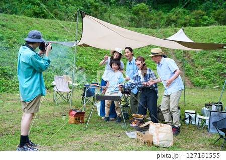 3世代 キャンプ アウトドア バーベキュー BBQ 家族 同僚 仲間