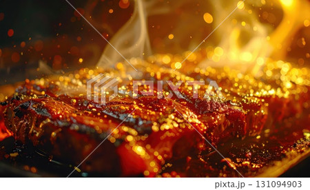 《AI画像》バーベキューで焼いているステーキ肉