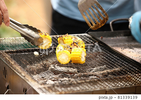 バーベキューで野菜を焼く
