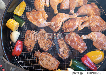 バーベキュー 鶏もも肉の網焼き