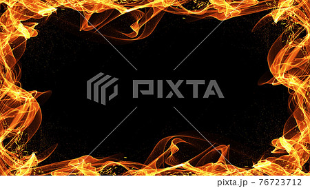 火花を散らしながら燃える炎の背景素材。黒背景で燃えるリアルな炎。炎のエネルギッシュな躍動と爆ぜる火花